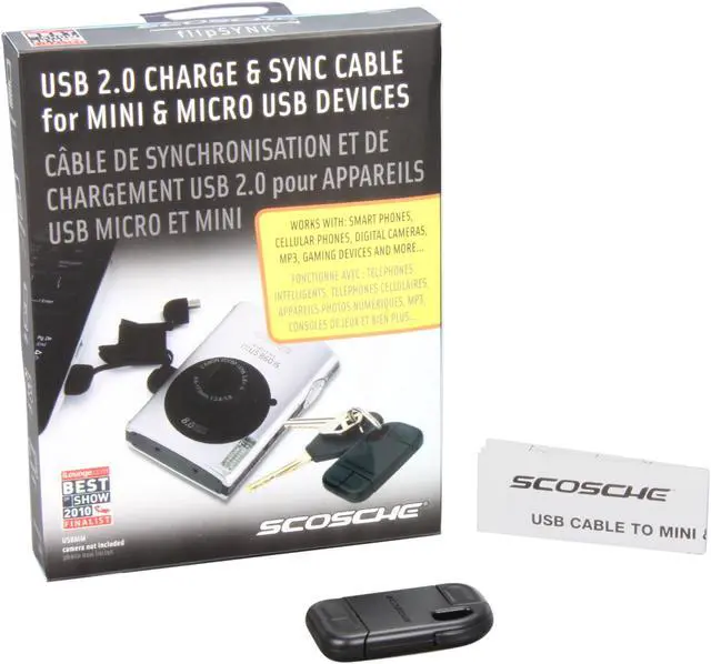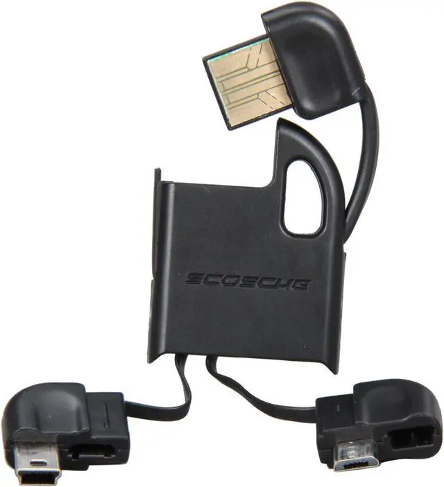 USB "Cable"Featuring one USB connector on one side, and one Mini USB plus one Micro USB connector on the other side, the SCOSCHE flipSYNC offers you a great solution to conveniently charge and sync your MP3, smart phone, cell phone, digital camera, gaming device and much more.