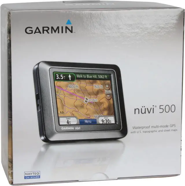Drive, hike, bike or boat. With the rugged, waterproof, multi-mode nüvi 500, you can do it all. Packed with detailed street and topographic maps, nüvi 500 is ready for adventure both on and off the beaten path. Like the 550, nüvi 500 switches modes to navigate your active lifestyle and provides spoken turn-by-turn directions to your destination.