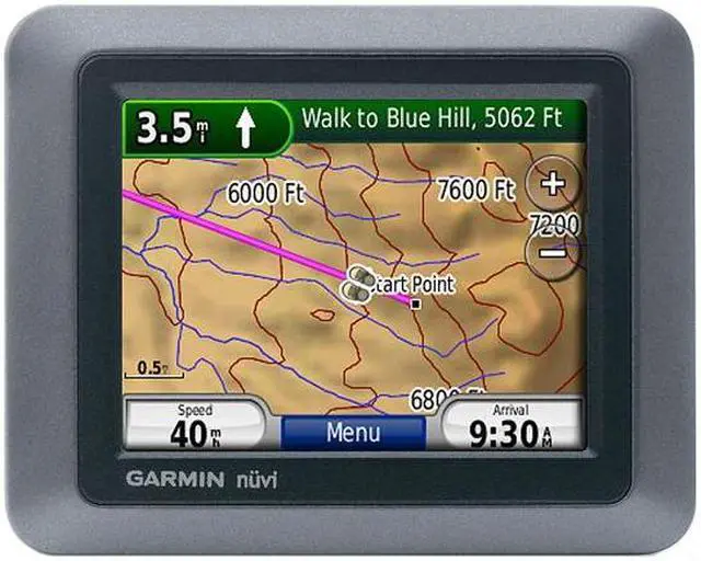 Turn-by-turn Directionsnüvi 500 has an intuitive interface that greets you with 2 simple questions: “Where To?” and “View Map.” Touch the color screen to easily look up addresses and services and get voice-prompted, turn-by-turn directions that speak street names to your destination. It comes preloaded with City Navigator NT map data for the lower 48 states, Hawaii and Puerto Rico (or 1 European region or country). It’s packed with millions of points of interest (POIs) and features digital elevation maps that show you shaded terrain contours at higher zoom levels. With nüvi 500, you can upload custom POIs and navigate to geo-tagged photos. If you're lost, use the Where Am I? emergency locator to view your exact latitude and longitude coordinates, the nearest address and intersection, and the closest hospitals, police stations and fuel stations.