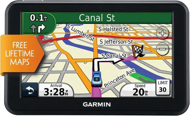 Get Turn-by-Turn Directionsnüvi 50LM's intuitive interface greets you with 2 simple choices: "Where To?" and "View Map." Touch the screen to easily look up addresses and services and to be guided to your destination with voice-prompted, turn-by-turn directions that speak street names. It comes in 2 mapping versions and has preloaded maps for the lower 48 states plus Hawaii and Puerto Rico or full coverage of the U.S. and Canada. nüvi 50LM’s speed limit indicator shows you how fast you can go on most major roads. With its "Where Am I?" emergency locator, you always know your location. It also comes preloaded with millions of POIs and offers the ability to add your own.