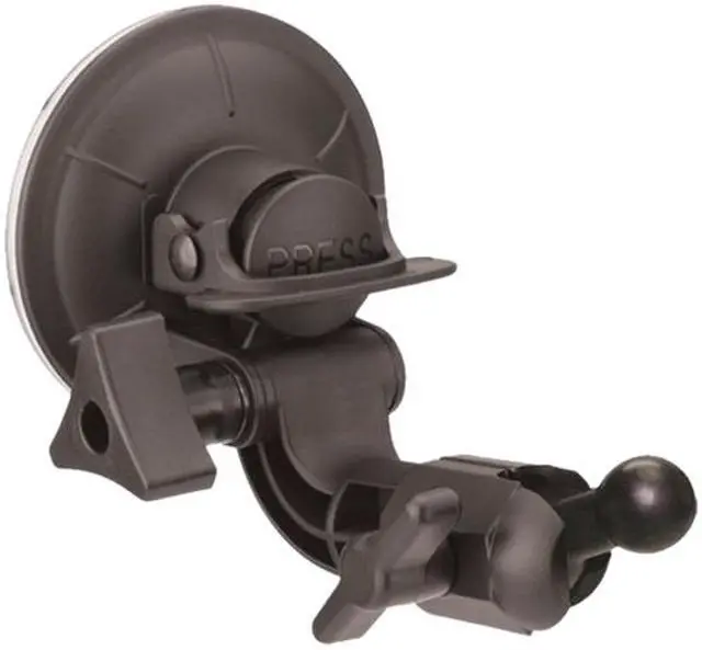 | Features | Quickly move GPS unit from vehicle-to-vehicle or stow for security Includes Garmin Adapter ball allowing it to be used with any Garmin GPS device with a ball-socket mounting option Powerful suction pad attaches to any smooth, flat, non-porous surface including windshields and windows Full range of motion at the ball (knob adjustment): 210º Tilt, 360º Turn & 360º Rotation Ratcheted arm has 140º vertical motion; knob locks arm into place Suction pad is 3.4" (86.4mm) in diameter Overall length is approximately 4.5" (114.3mm) |