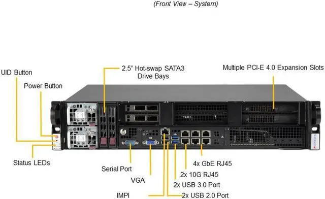| Expansion Slots | Slot 1: PCIe 4.0 x16 or x8 slot (low profile) Slot 2: PCIe 4.0 x16 x8 slot (low profile will be disabled if slot 1 is configured as PCIe 4.0 x16) Slot 3: 1 PCI-E 4.0 x8 FHHL (optional if CPU is less than 165W with 1U heat sink) Slot 5: 1 PCI-E 4.0 x16 FHHL Slot 6: 1 PCI-E 4.0 x16 FHHL |
