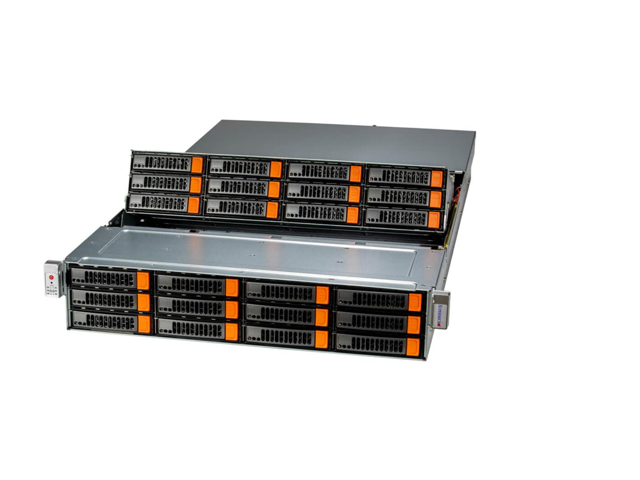 - 24 Hot-swap 3.5" SAS3/SATA3 drive bays, 2 Rear SATA Slots, 4 Optional Rear NVMe Slots, 2 NVMe M.2 (form factor: 2280/22110)