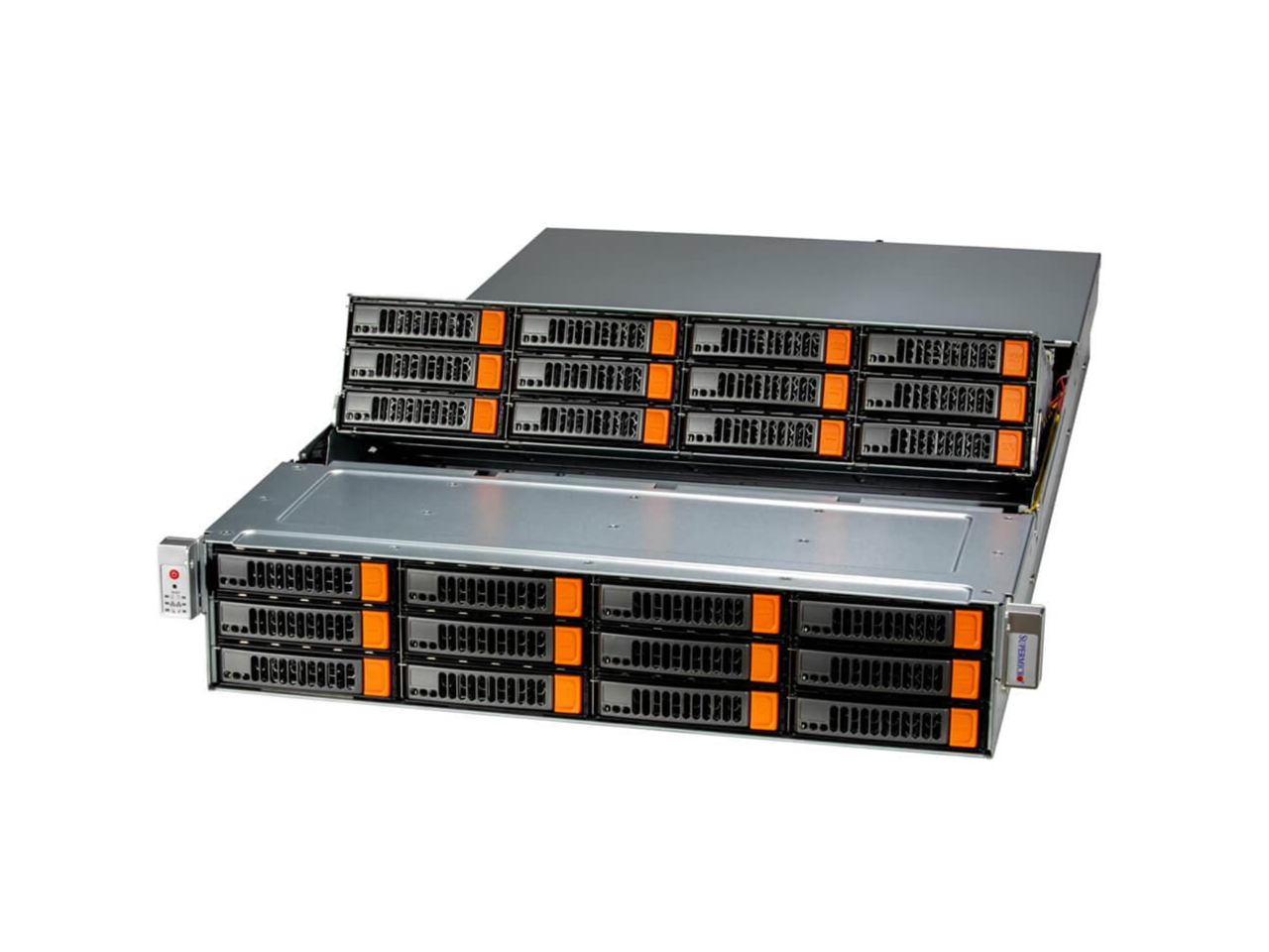 - 24 3.5" Hot-swap SAS3/SATA3 drives, 2x Rear SATA Slots, 4x Optional Rear NVMe Slots, 2x NVMe/SATA M.2 (form factor: 2280)