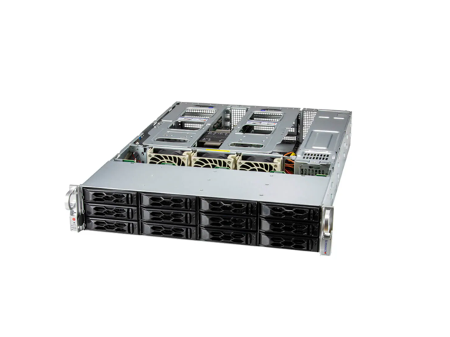 - 12 Front hot-swap 3.5" SATA3 drive bays (Optional 2 hybrid Gen5 NVMe), SAS3 with additional SAS controller card