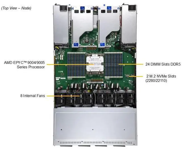 | Memory Features | Max Memory (1DPC): Up to 3TB 4800MT/s ECC DDR5 RDIMM (AMD EPYC 9004 Series Processor) Max Memory (2DPC): Up to 6TB 4000MT/s ECC DDR5 RDIMM (AMD EPYC 9004 Series Processor) Max Memory (1DPC): Up to 4.5TB 5200MT/s ECC DDR5 RDIMM (AMD EPYC 9005 Series Processor) Max Memory (2DPC): Up to 9TB 4400MT/s ECC DDR5 RDIMM (AMD EPYC 9005 Series Processor) |