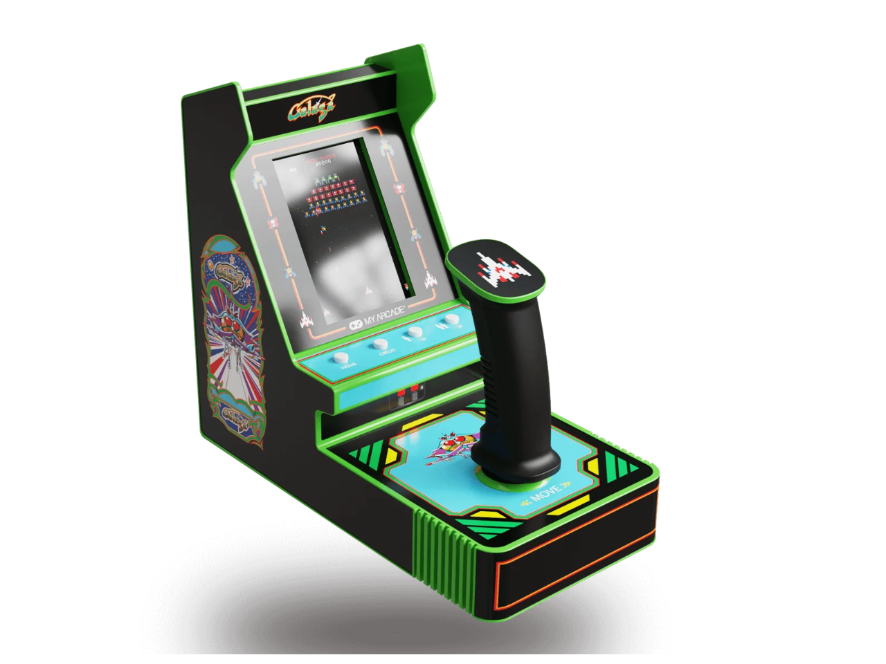 Features artwork inspired by the original GALAGA arcade cabinet.