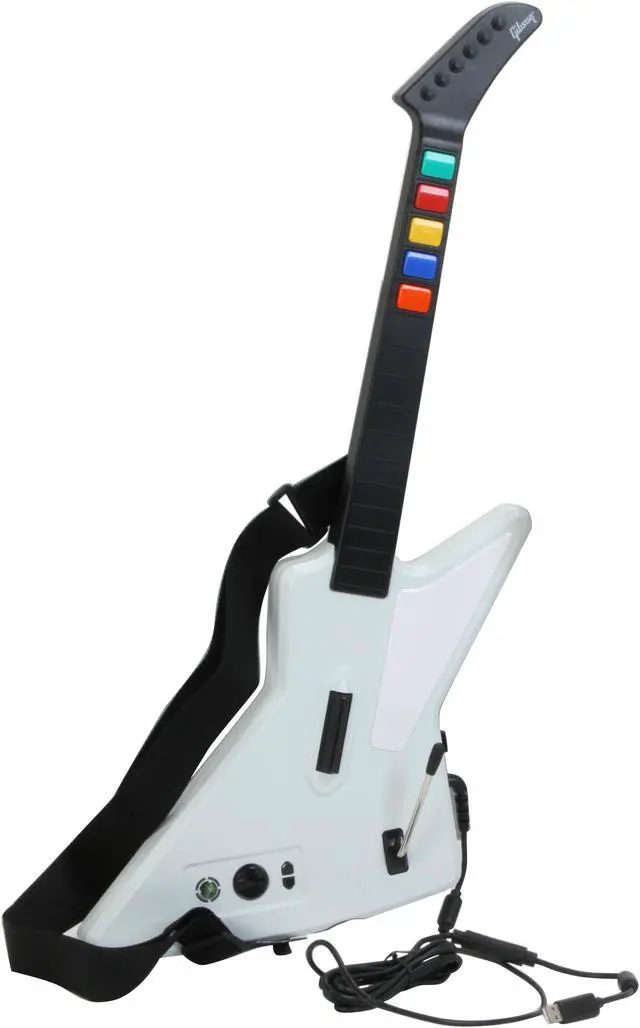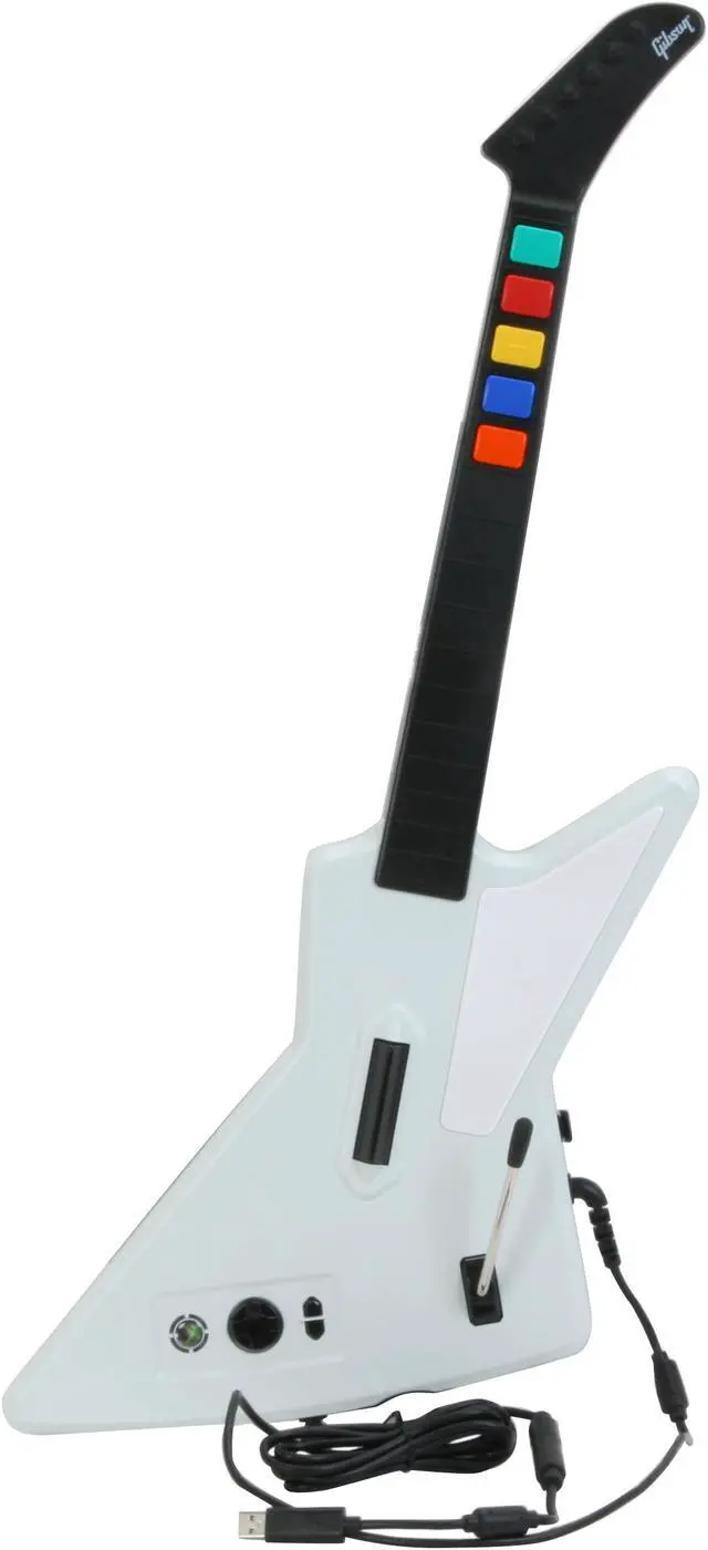 Now you can get in touch with your inner rock god on the Xbox 360, PC or Macintosh computer. Faithfully replicating the Gibson X-Plorer guitar's futuristic styling of this classic design, this controller feels like the real thing. Its beauty is more than skin deep as it contains all of the features required to climb your way to rock stardom in Guitar Hero III. The X-Plorer is also one of the in-game guitars available to your character.