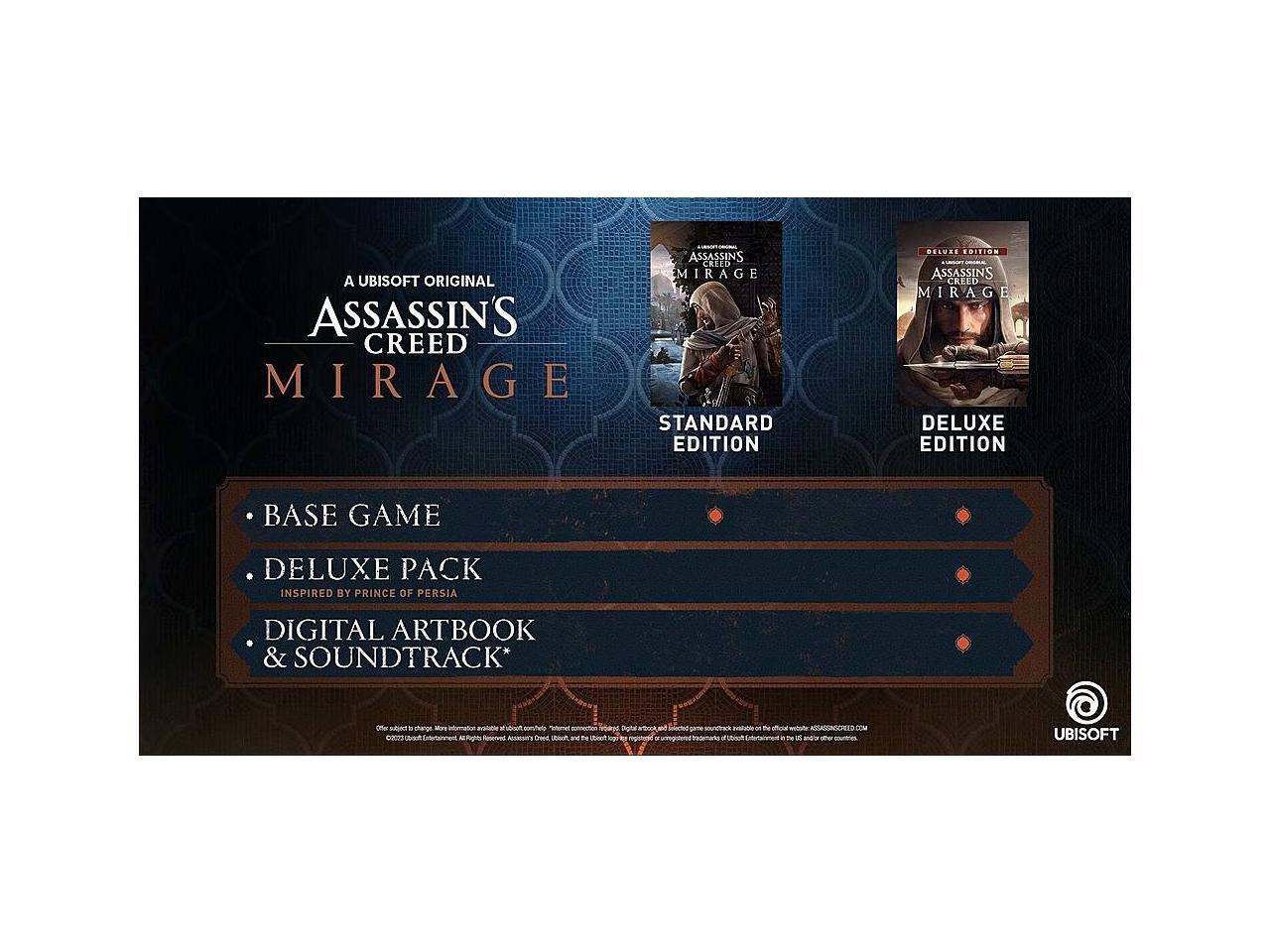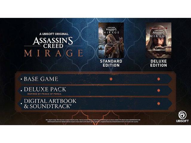 - The Deluxe Edition - Includes The Deluxe Pack (a Prince of Persia inspired outfit, eagle & mount skins, weapons, and more), digital artbook, and digital soundtrack.