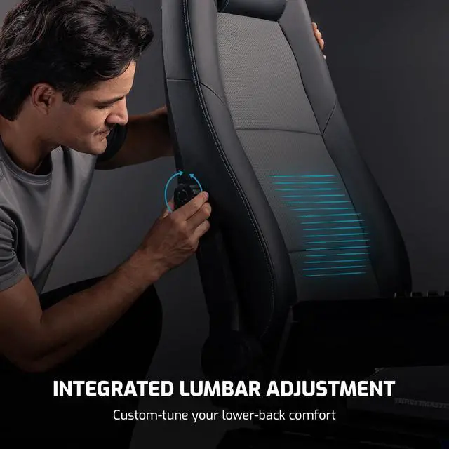 Custom-tune your lower-back comfort with the first integrated lumbar system designed specifically for flight simulation—quick to adjust and built for long sessions