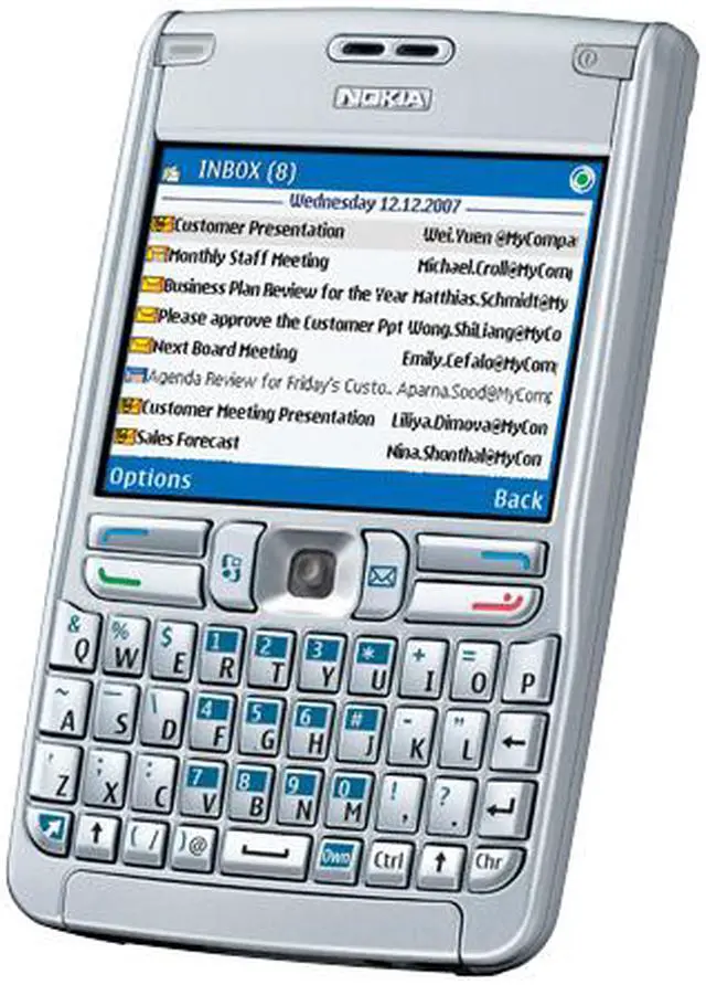 Bluetooth 2.0 TechnologyThe Nokia E62 features hassle-free Bluetooth 2.0 connection to Bluetooth-enabled headsets, cell phones, computers and more. Transfer and share photos, music, videos and documents in great convenience using your Nokia E62!