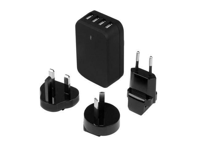 StarTech Travel 4 Port USB Wall Charger with International Power Adapter (USB4PACBK)