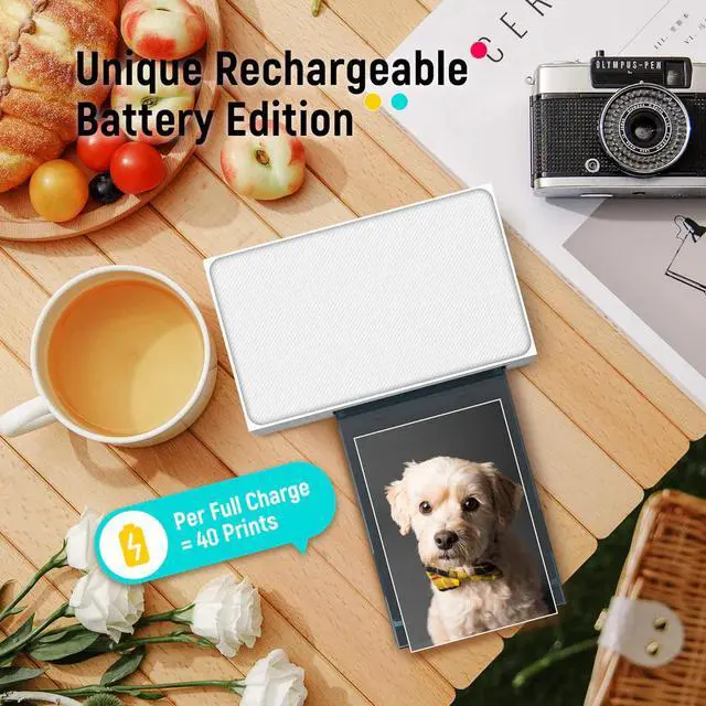 • Rechargeable Built-in Battery: Print wirelessly on the go (up to 40 prints per charge).