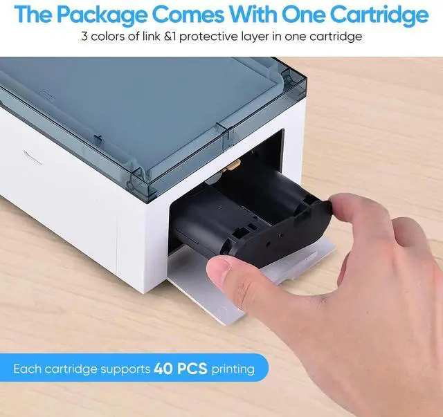 • Ink Cartridge: 3 colors of ink and 1 protective layer in one cartridge. Supports 40 pieces printing per cartridge.