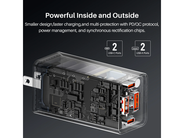 High-Efficiency with Multi USB Port Wall Charger: Powerful 65W PD output for fast charging. Charge up to 4 devices simultaneously.