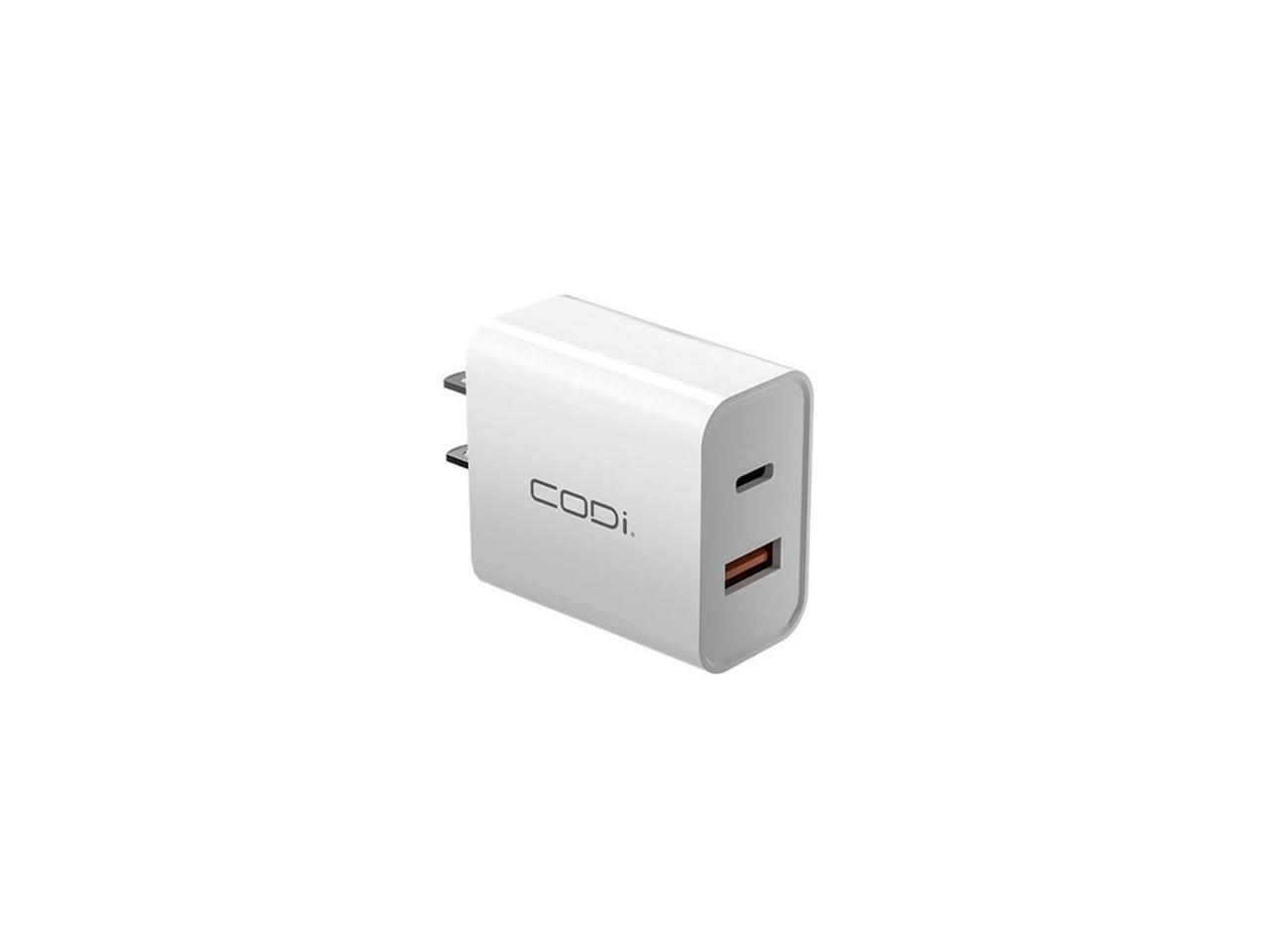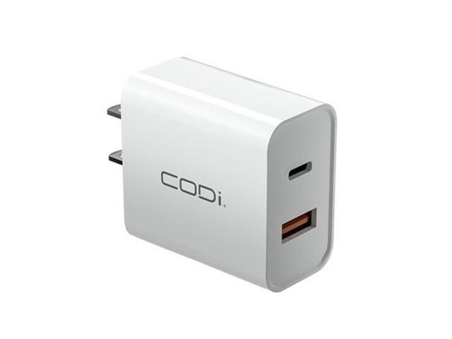 Codi A01102 White 20W Dual Port Wall Charger, USB-C and USB-A Outputs