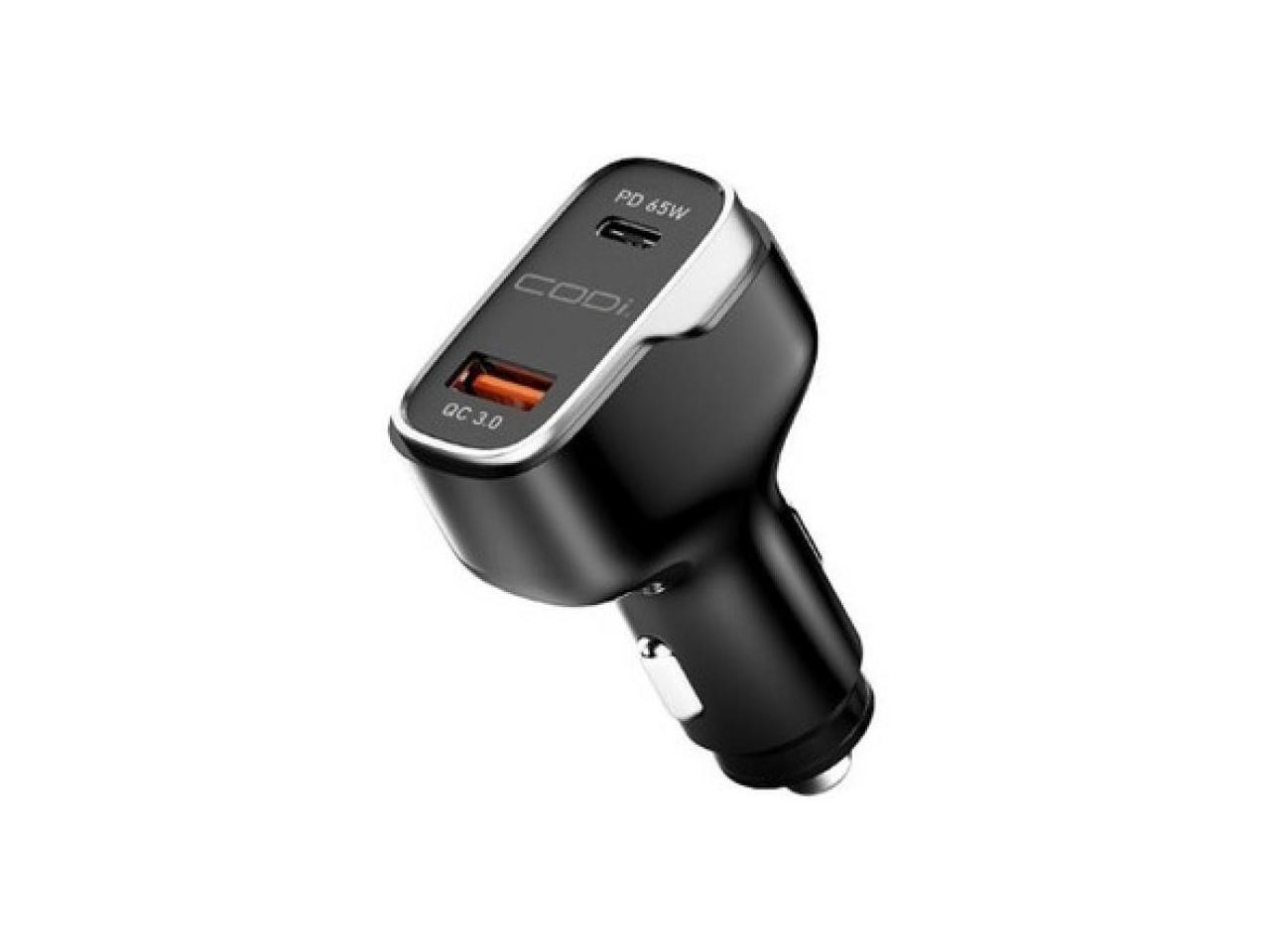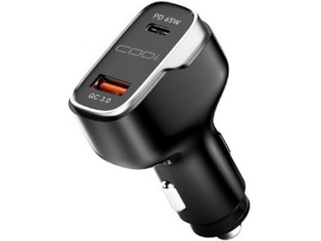 Codi A01111 Black/Silver 65W Dual Port Car Charger, USB-C & USB-A Outputs