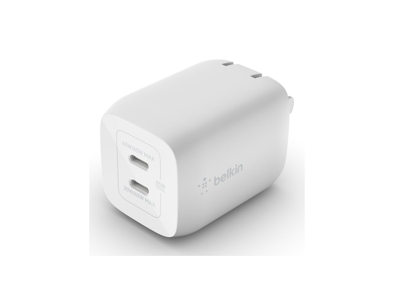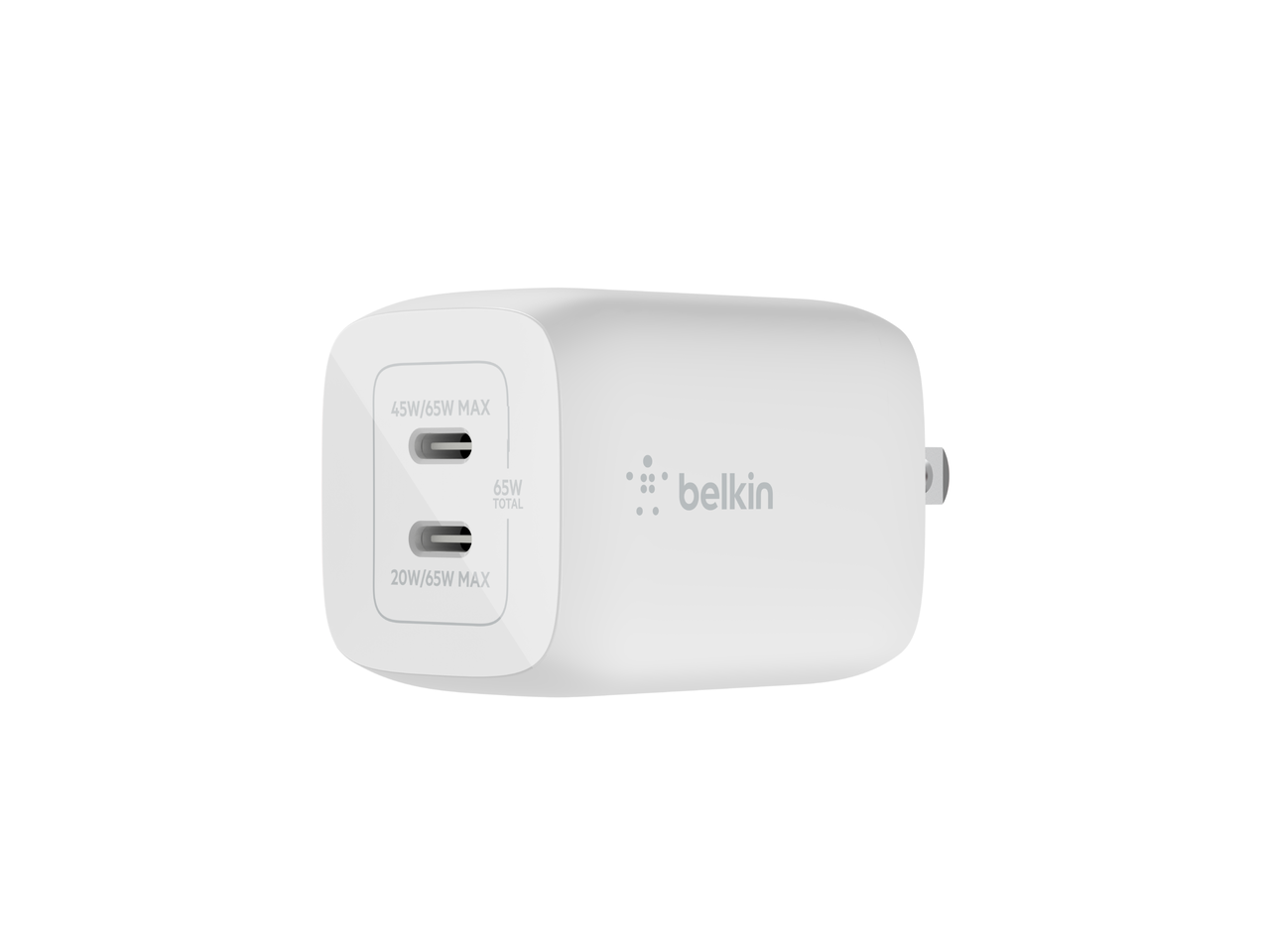 Belkin BoostCharge Pro Dual USB-C GaN Wall Charger with PPS 65W WCH013DQWH