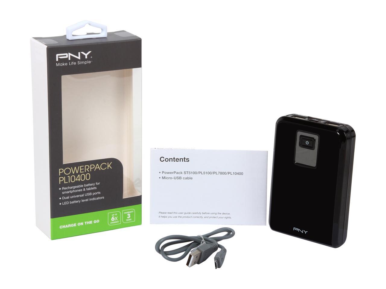 PNY P-B-10400-12-K01-RB PowerPack 10400 mAh 1/2.4 Amp Rechargeable Battery with LEDs for iPhone/iPad, Samsung, Nexus, HTC One, LG, BlackBerry, and other Smartphones and Tablets