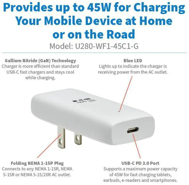 Ideal for charging smartphones, tablets, e-readers and laptops while traveling