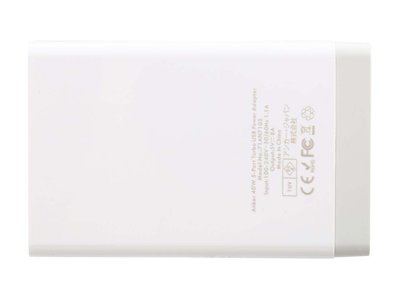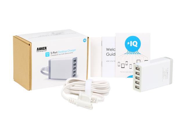 (NEW) Anker 71AN7105SS-WA 40W 5-Port Family-Sized Desktop USB Charger with PowerIQ Technology For iPhone, iPad Air, Samsung Galaxy, Nexus, HTC, Nokia and More (White)