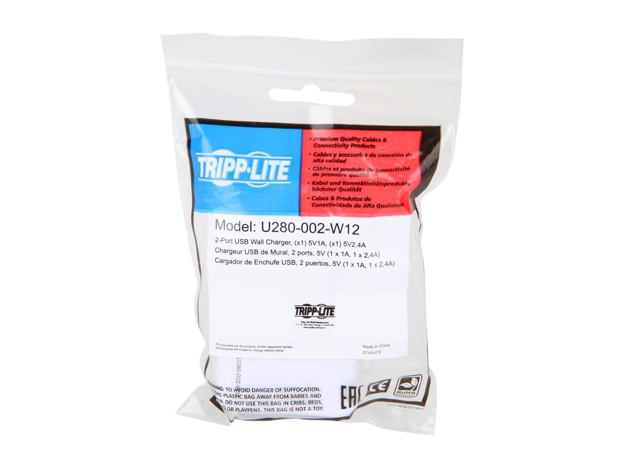 Tripp Lite U280-002-W12 Blue / White 2-Port USB Wall/Travel Charger, 5V, 1.0/2.4A