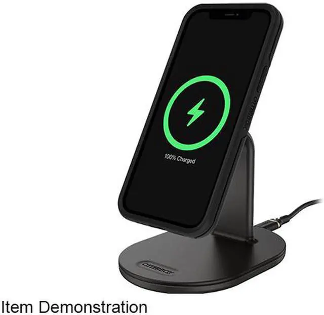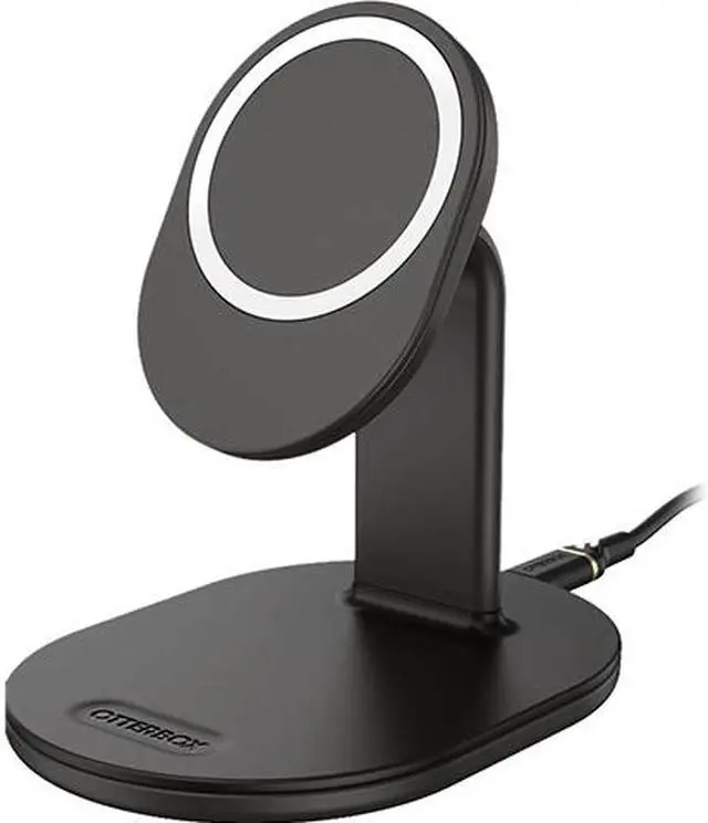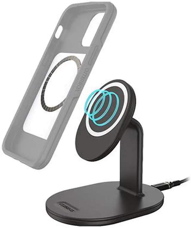 PRODUCT OVERVIEWA sleek, compact Charger Stand for MagSafe with a small footprint and magnetic attachment is the ideal iPhone resting place at home and in the office. Set the stand in a handy place where you can monitor all the connections coming across your iPhone and interact with your phone while it charges. KEY FEATURESThe streamlined design creates an ideal iPhone resting placeSeamless magnetic alignment and attachmentWirelessly powers iPhone at 7.5 watts15W Qi wireless charger delivers optimal 7.5W charging speedsSuspends iPhone securelyin portrait or landscape while charging, streaming and connectingOne-of-a-kind glow-in-the-dark ring illuminates mount for easy locating after lights outNo-slip, weighted base holds stand steady as you attach and remove iPhone with one hand