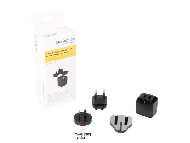 StarTech USB2PACBK Travel USB Wall Charger - 2 Port - Black - Universal Travel Adapter - International Power Adapter - USB Charger