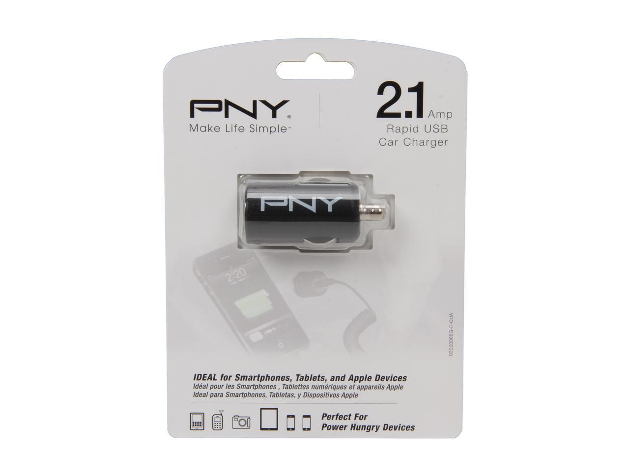 PNY P-P-DC-UF-K01-GE Black Rapid Universal USB Car Charger for Smartphones & Apple Devices w/12V DC @ 2.1A