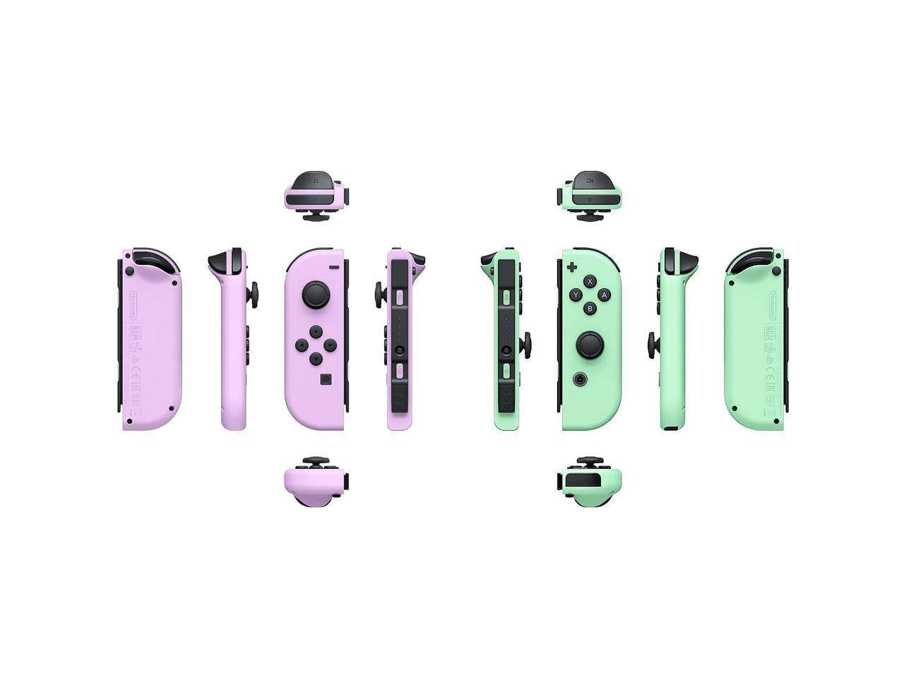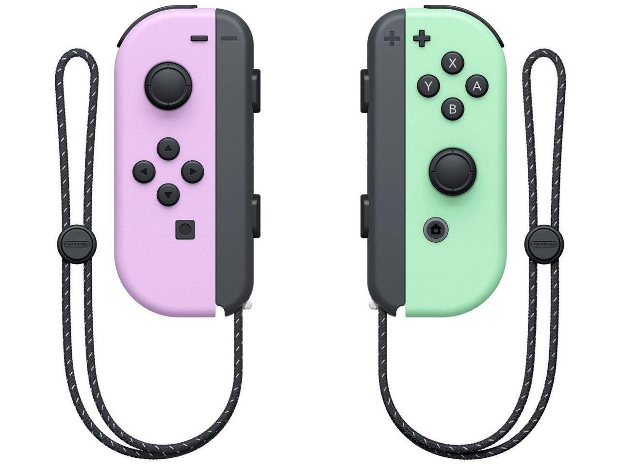 Includes one Pastel Purple Joy-Con (L), one Pastel Green Joy-Con (R), and two Black Joy-Con wrist straps.