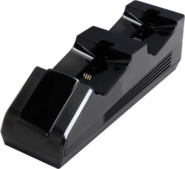 Conveniently store and charge two Dual Shock 4s with Nyko's Charge Base for PlayStation 4. The Charge Base for PlayStation 4 comes with 2 custom USB charge adaptors that adaptors attach to the Micro-USB port on the controller, leaving the ergonomics and grip of the Xbox One controller unchanged. The patented adaptors allow for easy drop and charge design, no cords, wires or plugs needed. The dual port recharging dock is AC powered, and plugs into any standard outlet, requiring no cables back to the console. The low-profile design allows for the Charge Base to fit easily in entertainment centers while the LED charge indicators keep you notified of charging status.