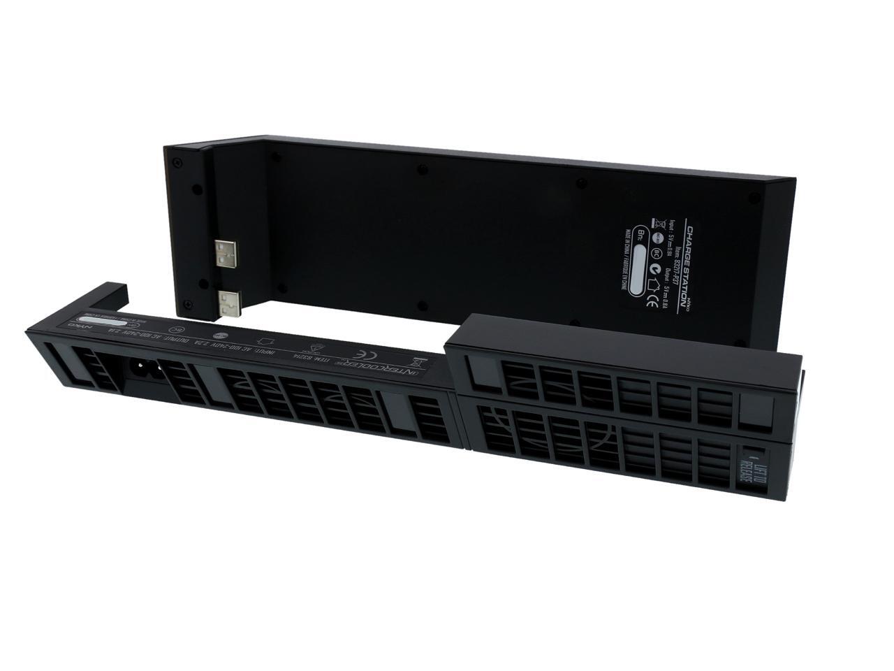 Nothing is more frustrated than a console or controller running out of juice when you're immersed in the action of game. The Nyko modular power & cooling combo, including Nyko Modular Charge Station and Intercooler both for PlayStation 4, helps you get over these issues. The charge station snaps onto the top of the console, and features two micro USB ports to charge two controllers simultaneously. It's powered by two front USB ports, no wall outlet required. The intercooler, great for cramped settings, attaches to the back of the console, and produces enhanced air flow to pull hot air out and away from your console. The temperature sensing technology automatically turns the intercooler on or off when it's needed. Best of all, both of the accessories come with an elegant and complementary design, ensuring a seamless match with your PlayStation console.
