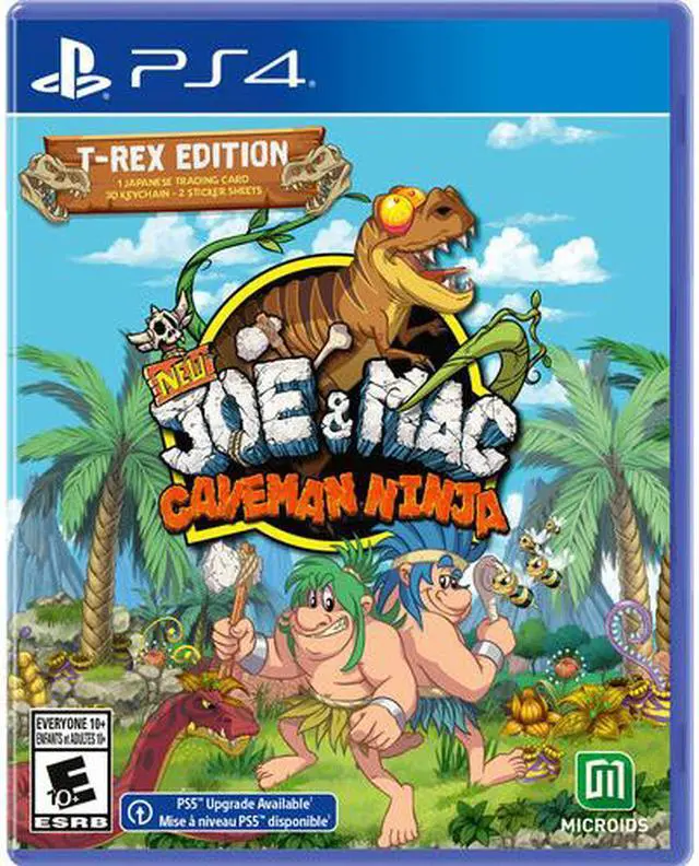 Welcome to prehistoric jungle! Journey back into the distant Past, when "Rock & Roll" was just about rocks and "Fast Food" was a dinner that you couldn't catch. 2 cave dudes named Joe & Mac live in a peaceful and cool village. Cool it was, until a bogus bunch of Neanderthal snatched all the village women. It's now up to Joe & Mac to save them all, and fight against deadly dinosaurs and carnivorous plants in this crazy and colorful action-platformer from the Jurassic times, with completely redesigned graphics! The HD version of this famous arcade game is still fun and quirky, but also longer, better, faster, and stronger... a brand new design: Experience a full and faithful remake of the arcade original game with new graphics, new sounds, and better control for an unprecedented experience. The T-Rex edition includes the base game, 2 sticker sheets, a 3D keychain and some trading cards.