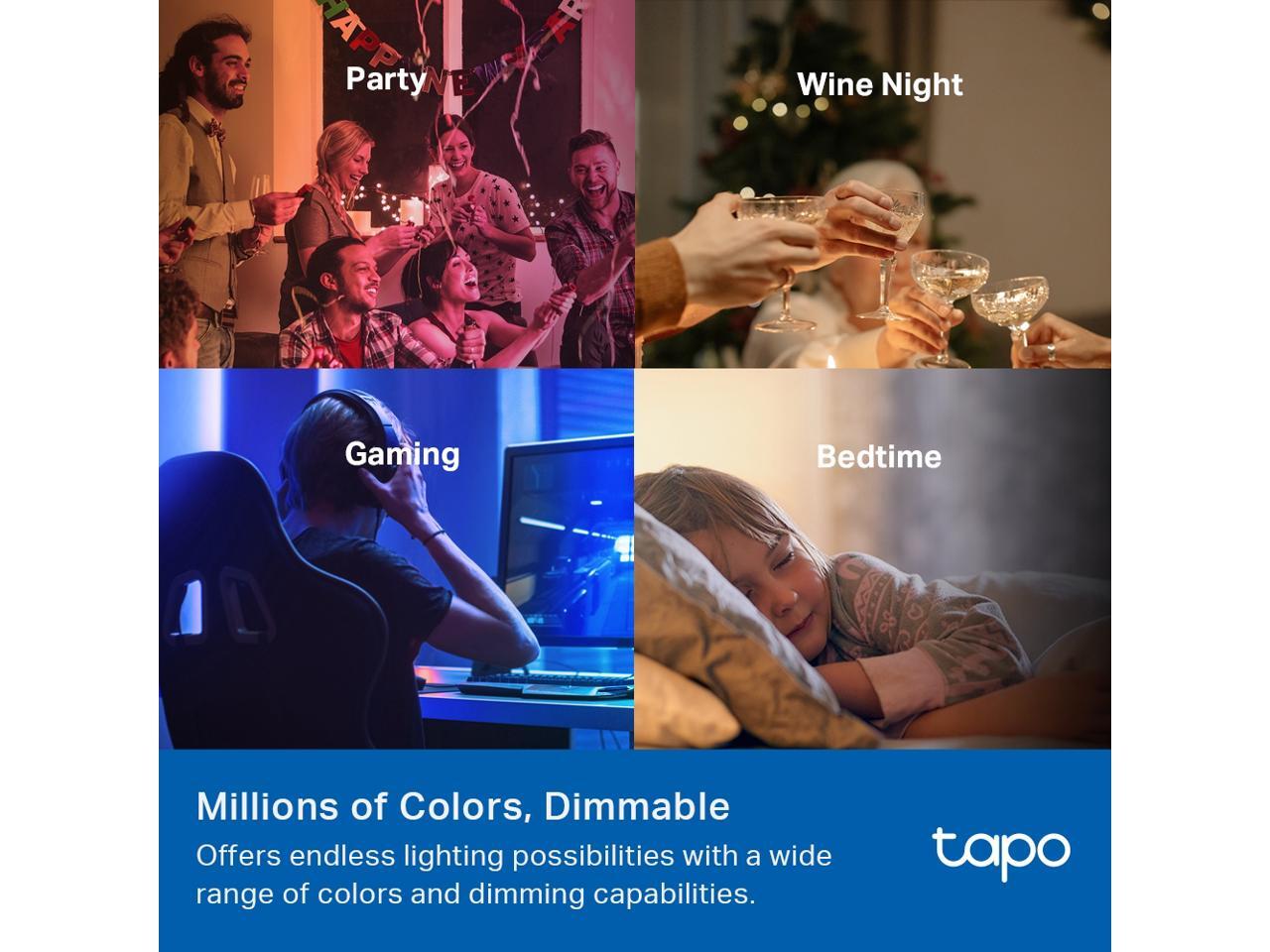 - Millions of Colors & Dimmable: Easily design scenarios with various vivid colors for your daily routine or special activities with this smart light bulbs. Adjust the brightness from 1% to 100% conveniently with the Tapo app.