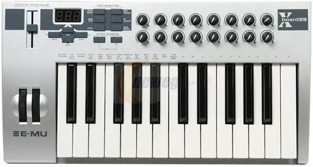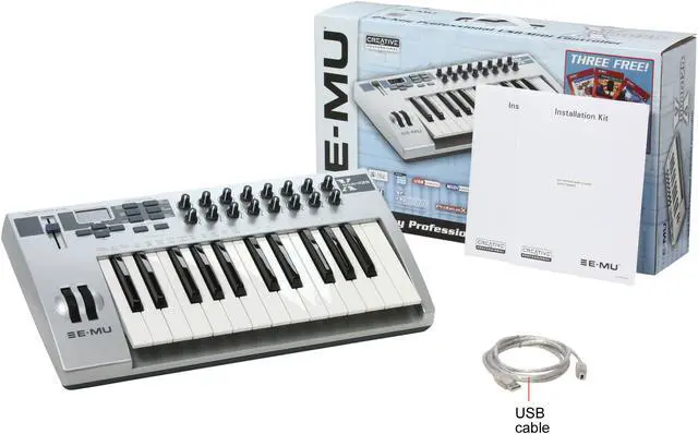 | Features | 25 full-size professional keys with Aftertouch - the Xboard 25 is a true performance controller with a high-quality synth-action keybed Includes Proteus X LE Desktop Sound Module (for Windows) with three additional sound libraries, as well as Ableton Live Lite 4 for E-MU (for Windows) Advanced studio/live performance features, like Latch Mode for triggering drum loops, Snap Shot for instantaneous program changes, and many more 16 real-time controllers that can be assigned to the key performance parameters of all your favorite virtual instruments USB, battery or AC powered - take your music anywhere PC & Mac compatible - Windows XP, 2000, x64, Vista and Macintosh OS X drivers |