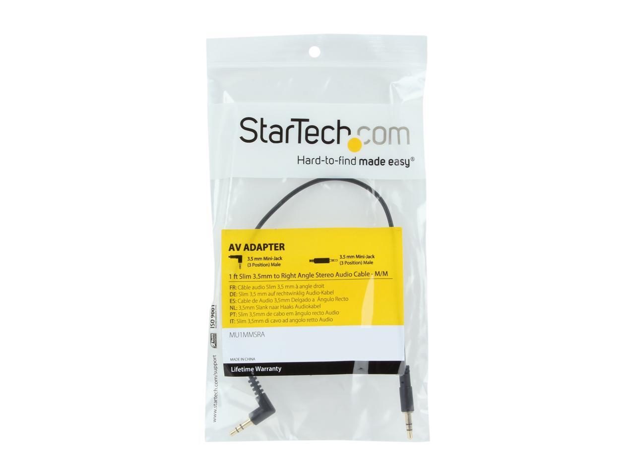 StarTech.com MU1MMSRA Slim 3.5mm to Right Angle Stereo Audio Cable Male to Male