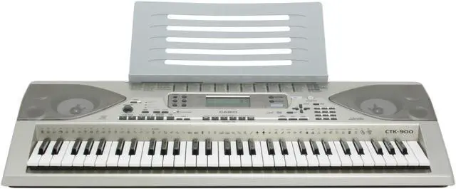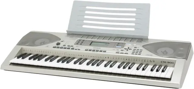 | Features | CTK Keyboards are Casio's Portable Keyboards. These have been designed for beginners and intermediate musicians. The CTK-900 is also considered a performance keyboard. CTK-900--61 Full-Size keys, 32-Note Polyphony, 824 Tones, 156 Rhythms, 232 Digital Effects, DSP, General MIDI, 5-song/6-track Sequencer, Backlit LCD, Touch Sensitive, Internet Data Expansion Capability, Assignable Pedal Jack, ZPI sound Chip, Larger Internal memory, CD Rom Included. <b>Input</b> MIDI Terminals In <b>Output</b> MIDI Terminals Out Sustain/Assignable Terminal: Standard Jack (Sustain, Sostenuto, Soft, Rhythm Start/Stop) Headphone/Output Terminal: Stereo Standard Jack |