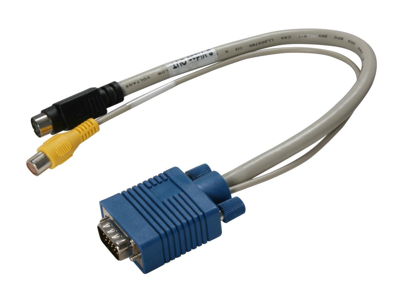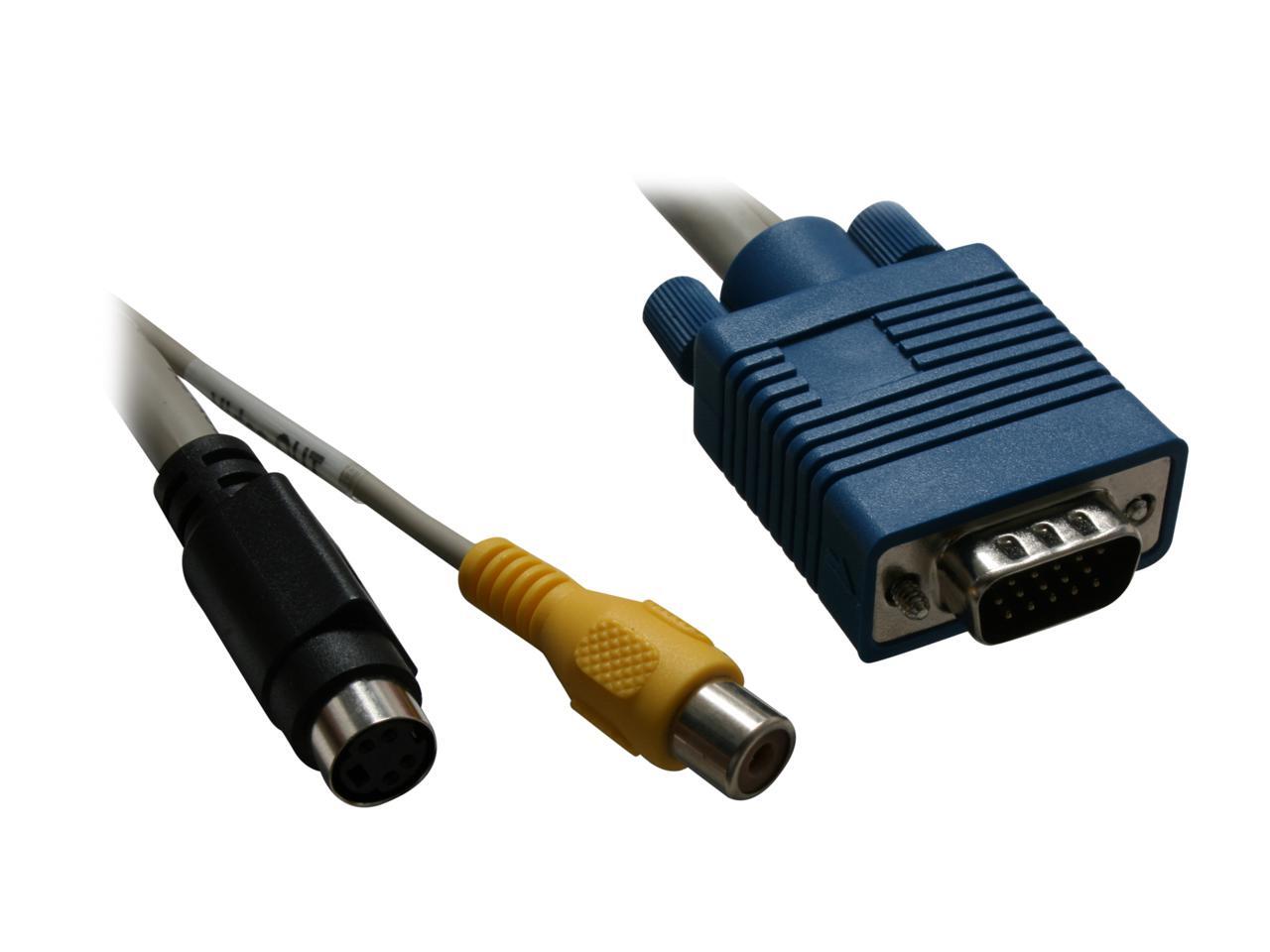 The Cables Unlimited AUD-2350 VGA to s-video or RCA adapter is designed to connect computers and laptops to TVs and projectors if your graphics card has TV-out function capability through VGA port. Featuring VGA connector on one end and both RCA jack video (TV) out and s-video out connectors on the other end, the Cables Unlimited AUD-2350 VGA to s-video or RCA adapter can display the content on the TVs or projector to show a bigger, more readable picture.