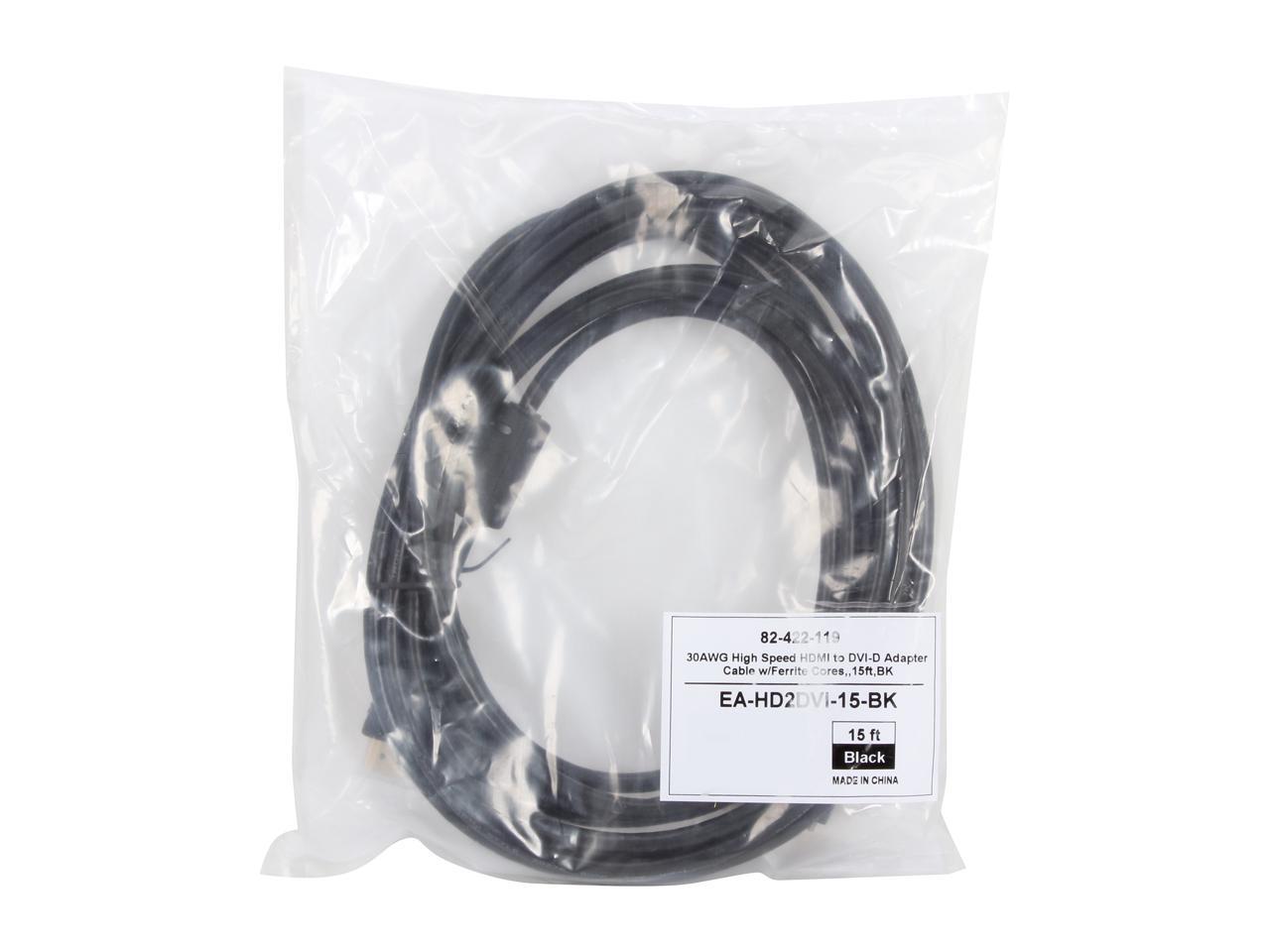 Coboc EA-HD2DVI-15-BK 15 ft. Black HDMI A Male to DVI-D (24+1) Male 30 AWG High Speed HDMI to DVI-D Adapter Cable w/ Ferrite Cores Male to Male
