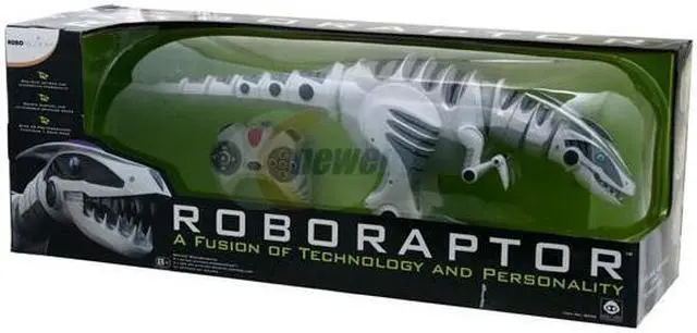 | Features | Fluid bi-pedal motion: walking, running and predatory gaits Realistic body movements: turning head and neck; whipping tail actions Three distinct moods: hunter, cautious and playful Autonomous environmental interaction: responds with mood specific behaviors and sounds Mood dependent behavior: aggressive/hunting mood; nervous/cautious mood; friendly/playful mood Multi-sensory: touch sensors in his tail, chin and mouth; sonic sensors Infra-red vision system detects objects in his path, or approaching him Powerful jaws that play tug-of war games, "bite" and pull Visual and sonic guard mode Responds to commands from Robosapien V2 and RS Media Auto shut-off function Video game style controller Demonstration mode Requires 6 x AA alkaline batteries, 3 x AAA alkaline batteries (not included) |