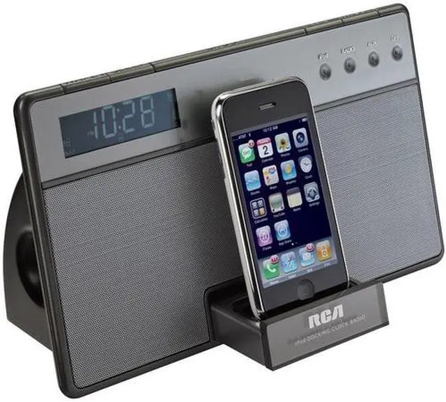 | Features | Clock Radio for iPod and iPhone 3G – Listen to, and wake from your iPod or iPhone 3G. Charging – Charges your iPod and iPhone 3G while docked. Retractable Docking Drawer – Drawer closes flush with face when not in use. Soft Front Control Keys – User friendly access to commonly used features with just a touch. Audio Line-in – Connect your mp3 player to the audio input jack and then sit back and enjoy your music. High Performance Sound Auto Time Set – Simply plug in the clock radio and the current Eastern Standard Time (EST) is automatically displayed. Press to select your time zone from the 7 built in options. Adjustable Brightness Control – Multiple levels of brightness are offered with this unit to accommodate different light conditions. SmartSnooze – When the alarm is activated, any of the top buttons will act as a snooze. Dual Wake – Individual wake time indicators allow for two different alarm settings for two different users. Each wake setting is indicated. Programmable Snooze – Turns off the alarm or radio for an extra 9 minutes of sleep or can be programmed for 1-30 minutes; you can snooze up to 2 hours. Programmable Sleep – Plays the radio for up to 2 hours before automatically turning off the radio, allowing you to gently fall asleep to music. Programmable Nap Function – Allows you to set an alarm for a short interval of sleep without disturbing the alarm settings. Set for 10-minute increments up to a total of 2 hours of naptime. Built-in "No Worry" Battery Backup – Your safeguard against power failures or outages. Graduwake Ramp-up Alarm – Volume slowly increases while sounding. |