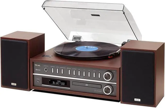 This new LP, Tuner, CD Player and Bluetooth Receiver will meet the needs of anyone's music library. The retro-modern design and separate two-way speaker pairing offer benefits that most competing products can't. The LP-P1000 provides a classic design, fit for any home or office interior. TEAC stepped up the game by including separate speakers. This ensures users can crank their stereo and get better sound reproduction without worrying speaker vibrations will interfere with the performance of the device or the playback of their LP's. The device drives a 25W/Ch. signal to each clean and crisp sounding speaker. The LP-P1000 also offers 2 AUX inputs to incorporate any other home devices like TV's or tape decks. The LP-P1000 is equipped to playback anything at home from your smart phones, tablets, computers and CD's up to your LP's. Choose from a wood-grain walnut or a black-wood finish. TEAC also offers replacement styluses for the LP-P1000 to ensure this device will continue to meet home listening needs for years to come.