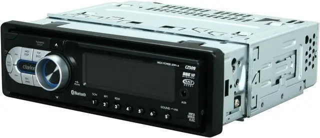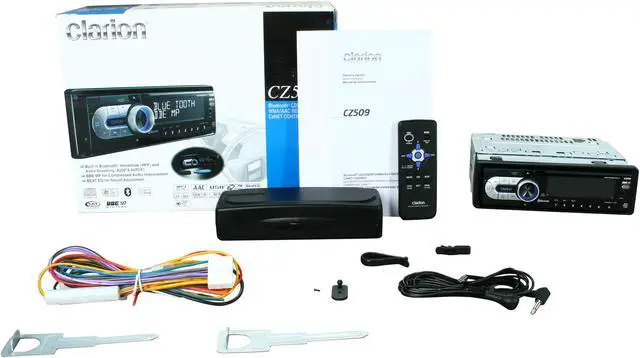 The Clarion CZ509 is an AM/FM/CD receiver that can play MP3, WMA, and AAC audio files on CD-R and CD-RW discs; and supports ID3-Tag, as well as CD Text. It also has a front-panel 3.5mm auxiliary input for connecting a portable audio device and a rear-panel USB type-A port for connecting your USB mass storage audio device or iPod. In addition, the CZ509 features built-in Bluetooth technology for wireless communication and audio transfer. Additional accessories that are compatible with this unit include Satellite Radio (via an optional tuner kit); multi-disc CD-changer (sold separately); and an optional steering wheel remote interface (sold separately) which allows you to keep your factory steering wheel controls.