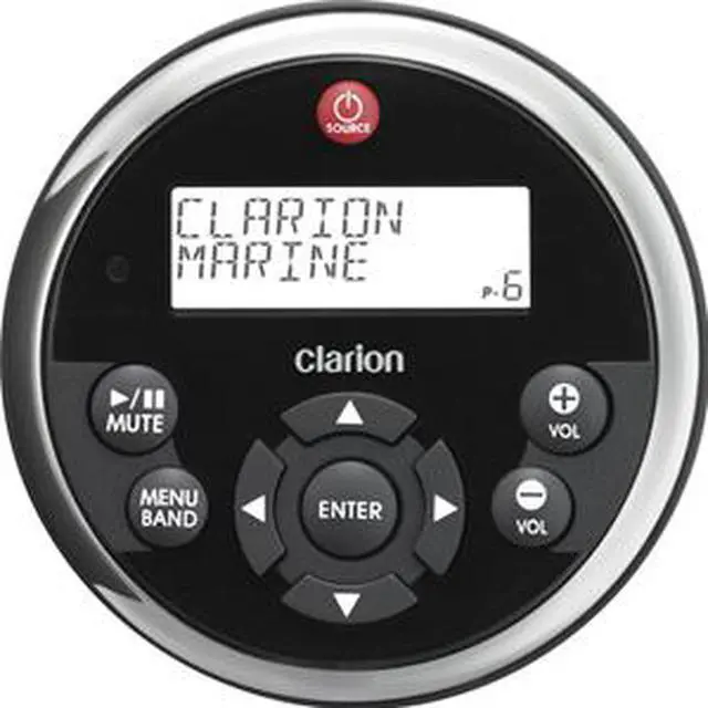 For use with select Clarion marine head units, the watertight MW1 wired remote control puts control of your system within arm's reach. It's durable to withstand harsh marine environments, and features a text LCD to display track information. The large, conveniently placed buttons allow for easy, error-free operation.