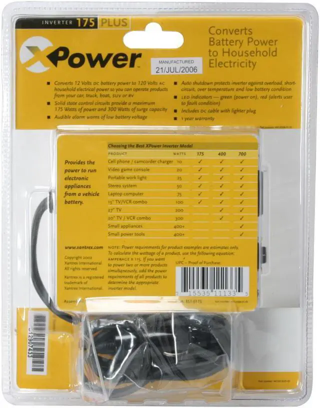 • neweggAuto Shutdown ProtectionThe xantrex XPower-175 Plus features automatic shutdown protection against overload, over-temperature and short circuit for safe, trouble-free operation.