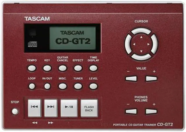 Ease to UseThe Tascam CD-GT2 is extremely easy to use with various user-friendly features such as integrated pitch and key control, guitar canceller with selectable canceling pan point and selectable frequency range, and seamless integration with CD-DA/CD-R/CD-RW disc playback, great for beginning guitar players.