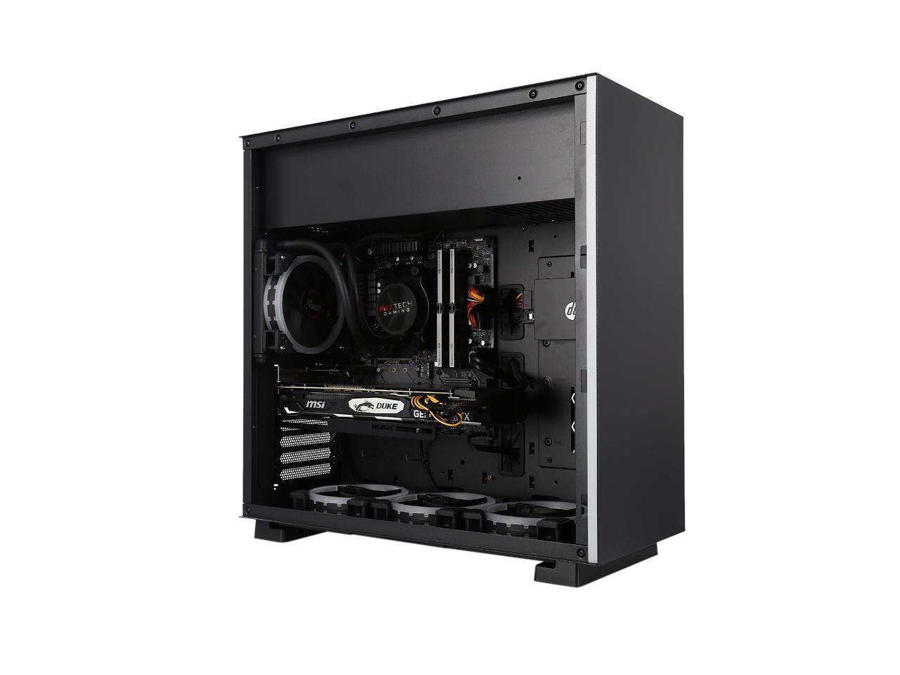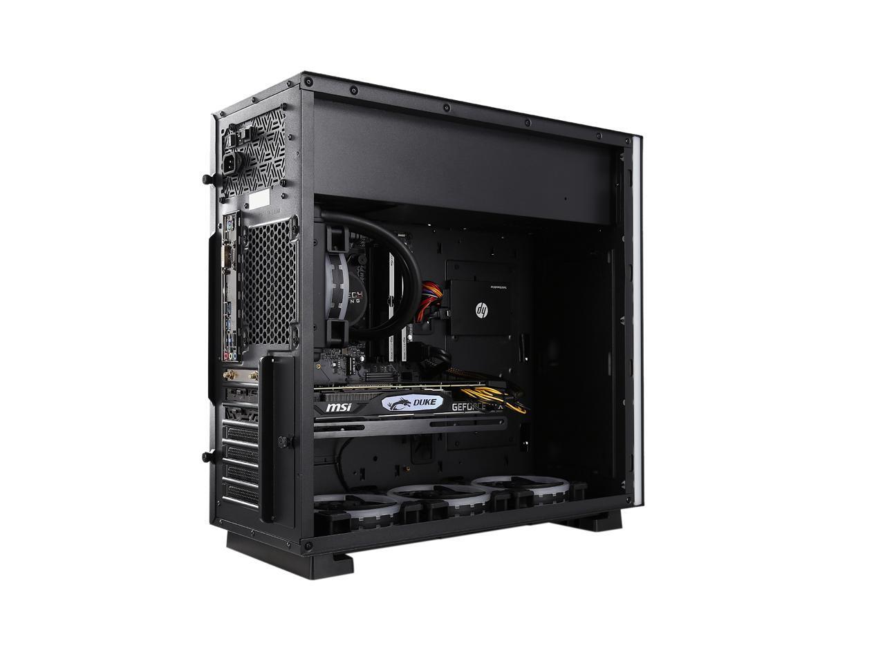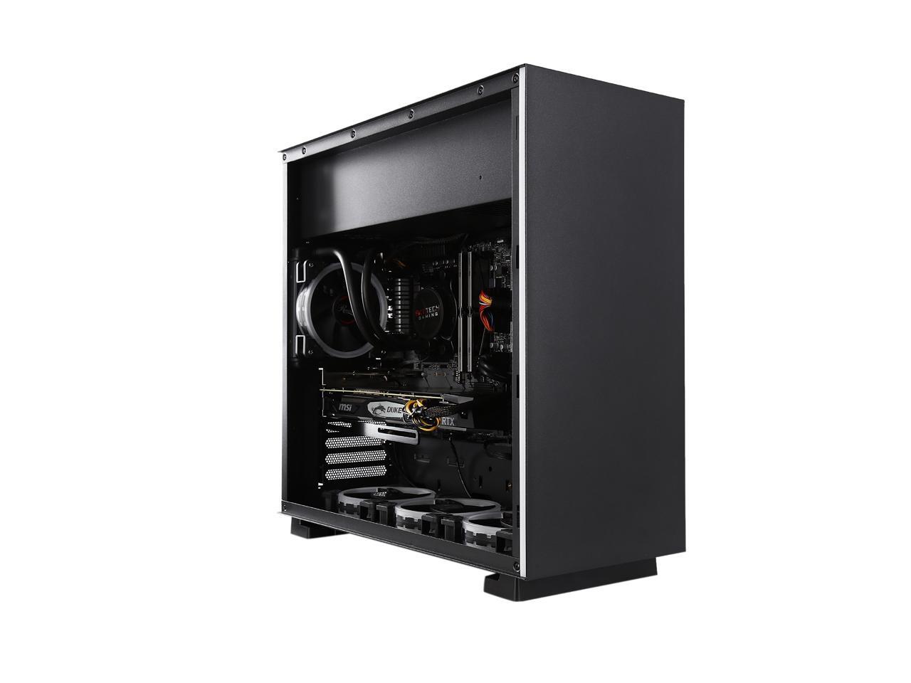 This sleek gaming desktop is exactly what you’ve been looking for. The extremely powerful performance of an AMD Ryzen 7 2700X processer and NVIDIA GeForce RTX 2070 GPU-based video card let you play the latest AAA titles and VR at high frame rates. Also, the built-in liquid AIO cooling system keeps the CPU cool during intense gaming sessions. With a 240GB SSD and 1TB HDD, both storage speed and capacity reach new heights. The tempered-glass side panel showcases internal components basking in stylish lighting effects from four RGB dual ring fans.