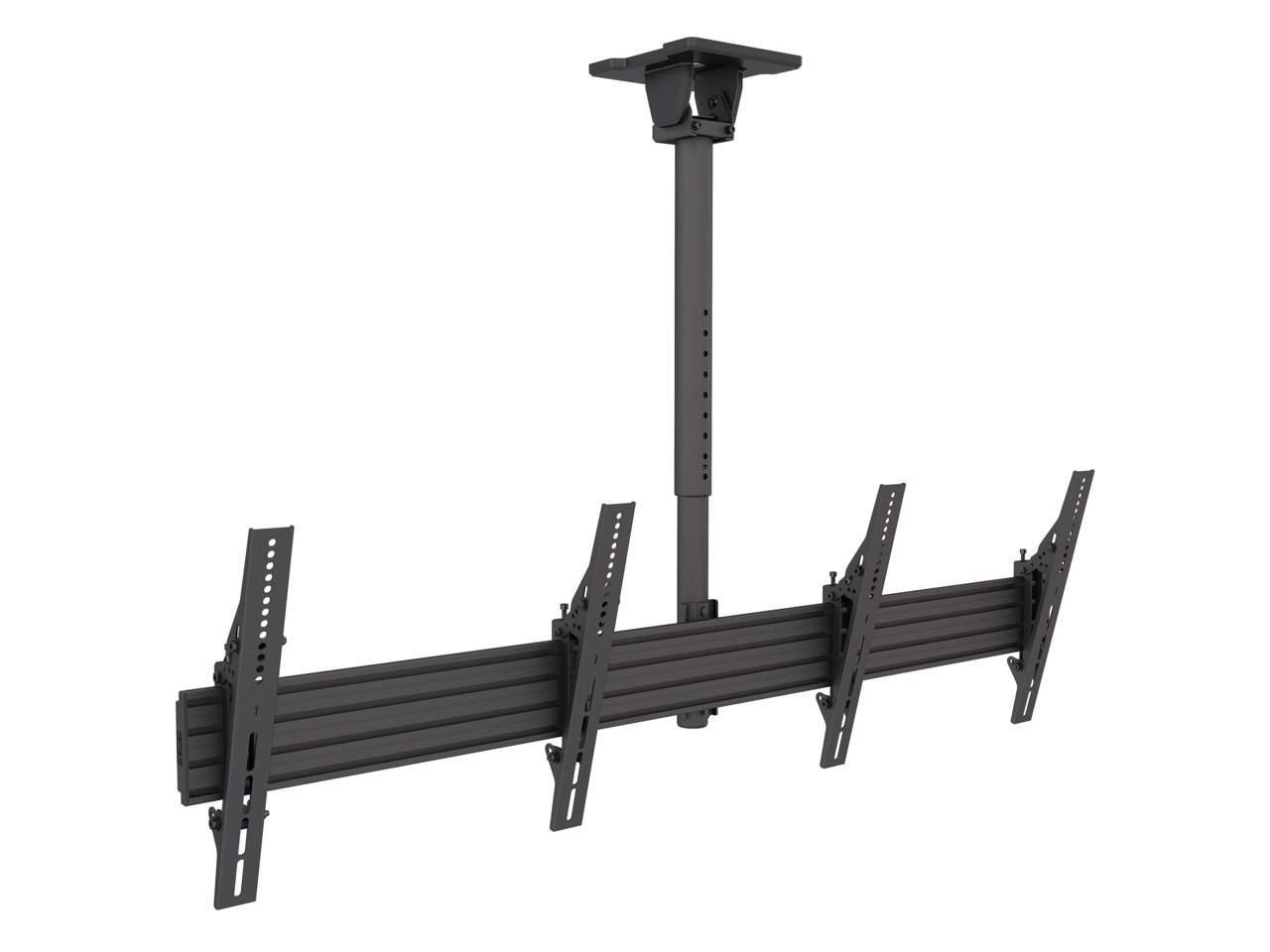 - Designed for commercial applications where wall space is limited, the MB Series telescoping ceiling mount system offers a flexible solution for displaying menu boards and other digital signage. MBC211T Menu Board Ceiling Mount System’s modular rails allow two screens to be placed adjacent to one another in portrait or landscape orientation, while precision leveling screws ensure perfect alignment. Achieve proper line-of-sight with easy height adjustments and four discrete tilt settings. This all-in-one mounting solution includes everything you need for wood and concrete installations and can swing up to 90° to accommodate sloped ceilings and support beams.