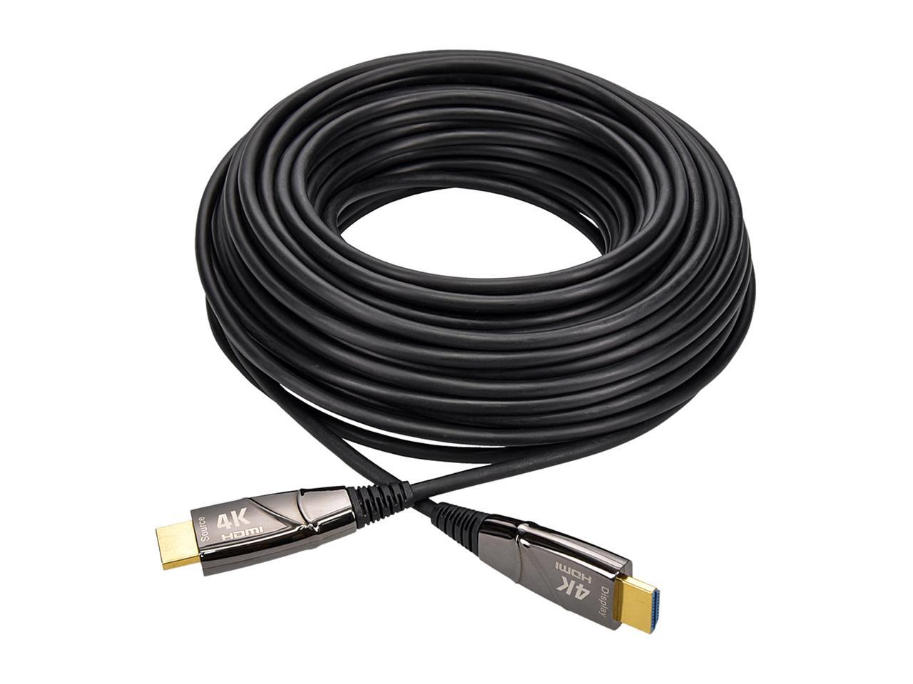 - Active optical cable (AOC) uses fiber optic technology to send HDMI signal