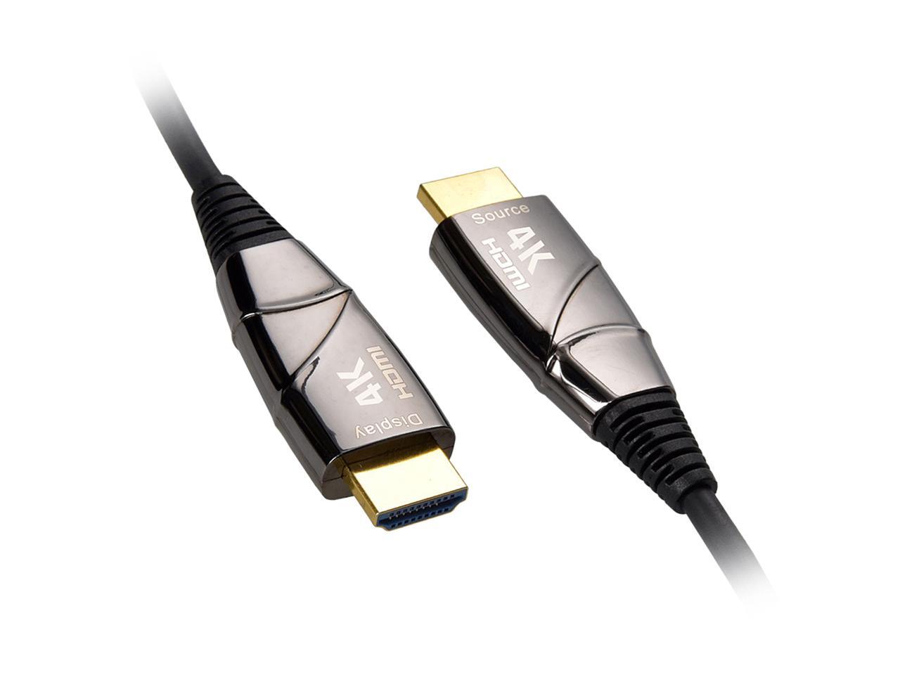 - Active optical cable (AOC) uses fiber optic technology to send HDMI signal